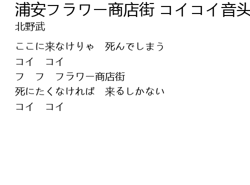 | Song | 浦安フラワー商店街 コイコイ音头 (『天才・たけしの元気が出るテレビ!!』) |