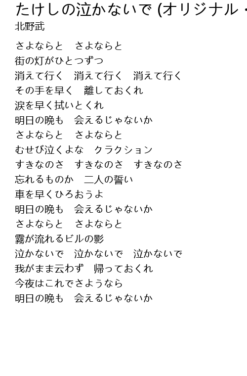 | Song | たけしの泣かないで (オリジナル・アルバム・セレクション) |