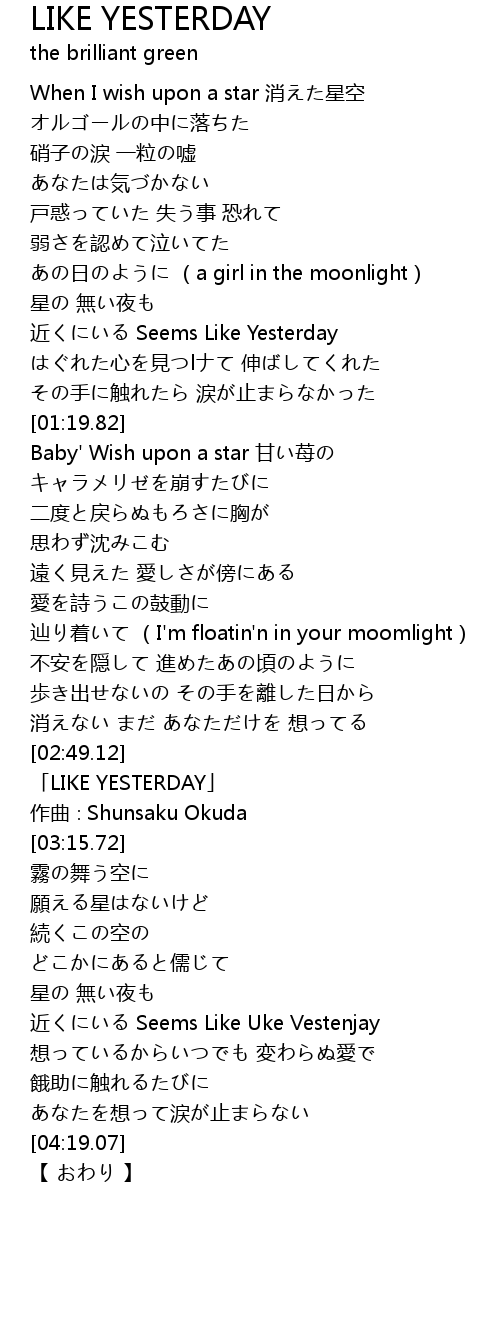 | [02:52.72] | LIKE YESTERDAY |