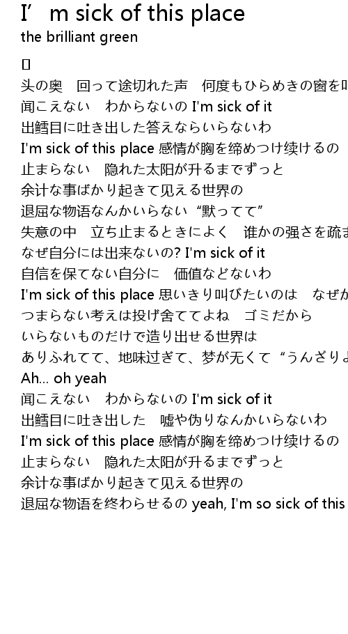 | I'm sick of this place 思いきり叫びたいのは なぜかしら? | |