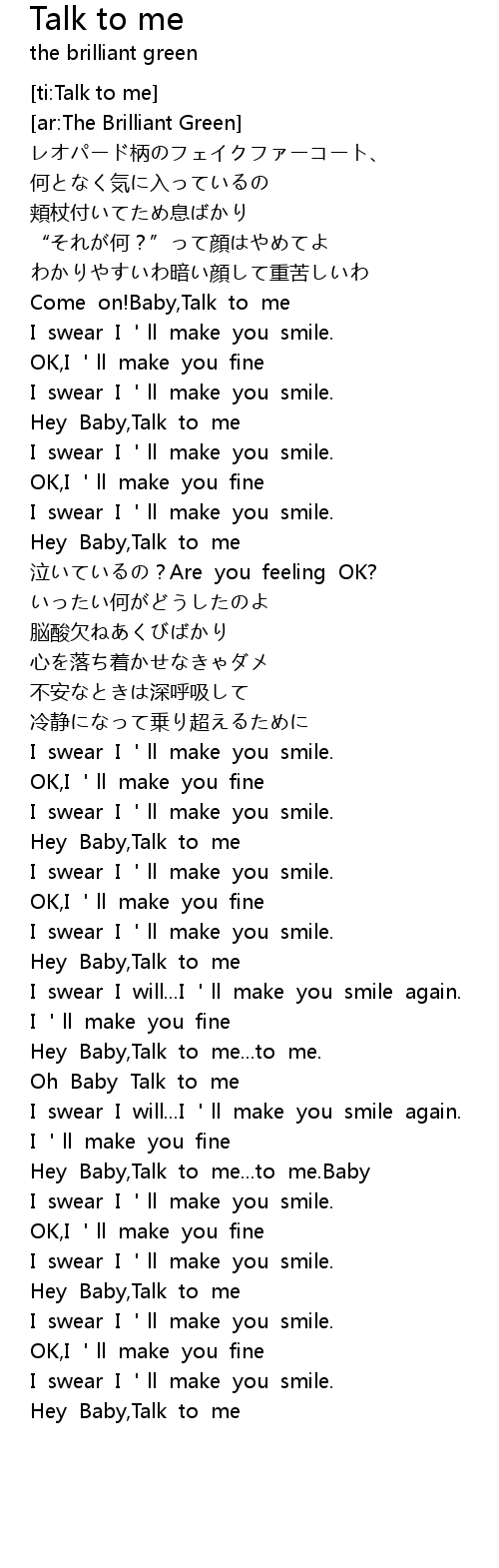 | [02:29.86] | Hey Baby,Talk to me...to me.Baby |