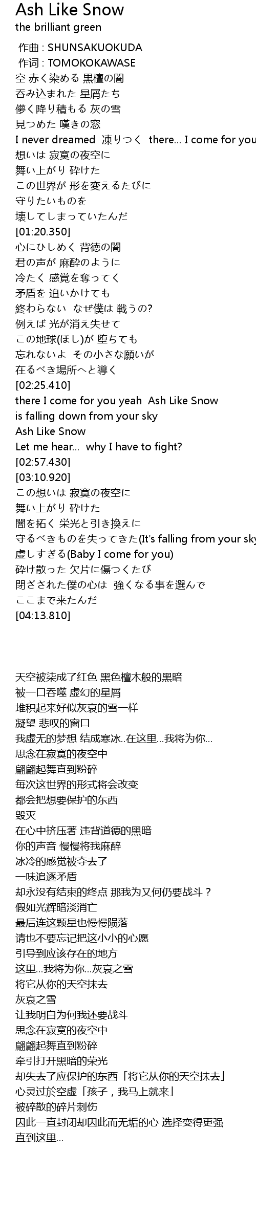 | [02:33.590] | there I come for you yeah Ash Like Snow |