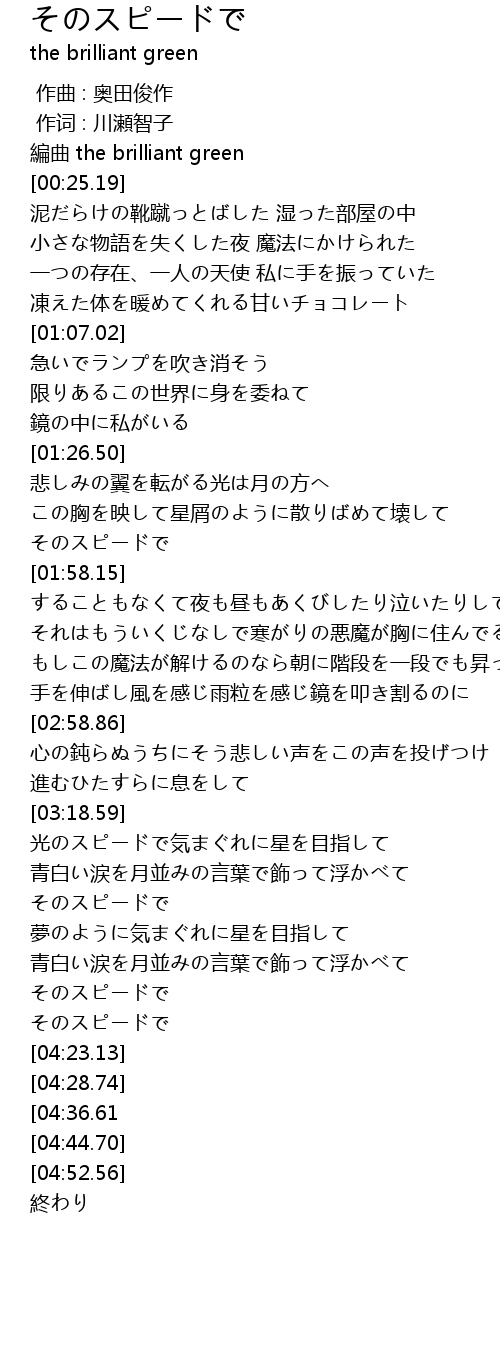 | [03:21.01] | 光のスピードで気まぐれに星を目指して |