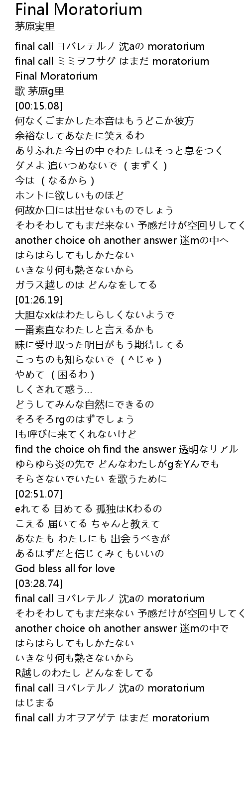 | [00:06.00] | final call ミミヲフサグ はまだ moratorium |