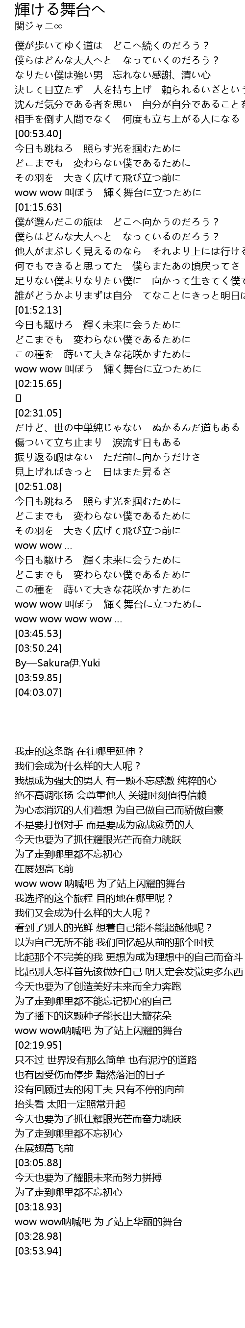 | [03:23.33] | wow wow 叫ぼう 輝く舞台に立つために |
