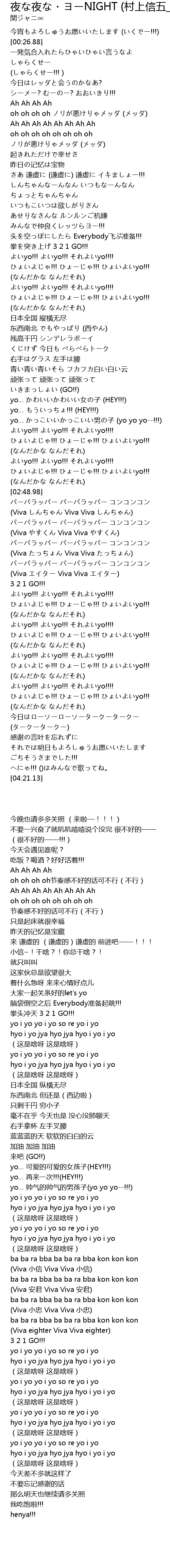 | [02:35.81] | よいyo!!! よいyo!!! それよいyo!!!! |