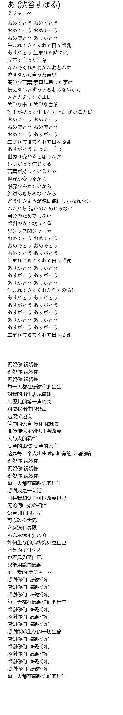 | [03:15.430] | 生まれてきてくれた全ての命に |
