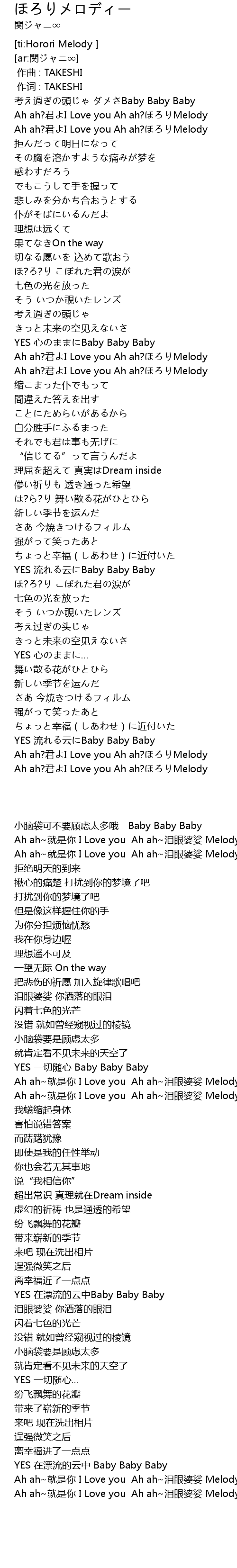 | [01:52.650] | Ah ah? jūn I Love you Ah ah? Melody |