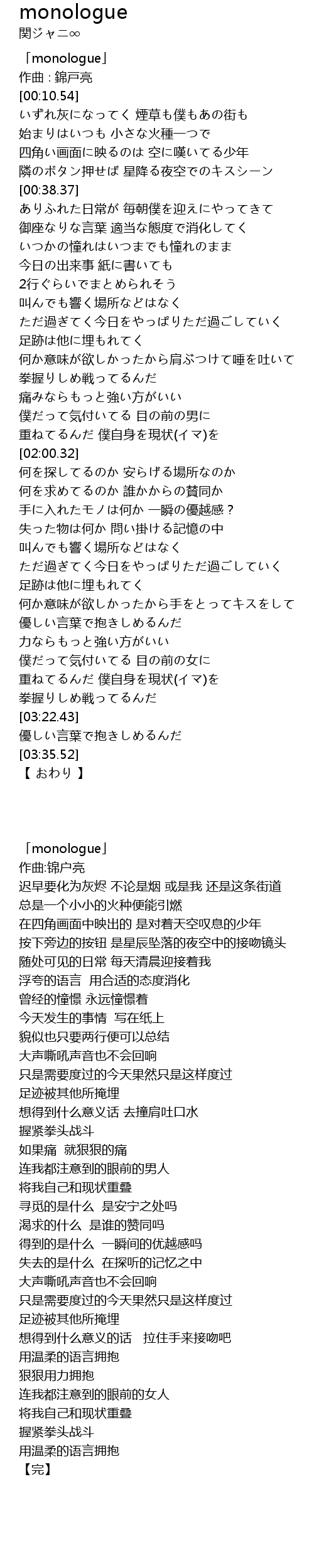 | [02:08.06] | 何を求めてるのか 誰かからの賛同か |
