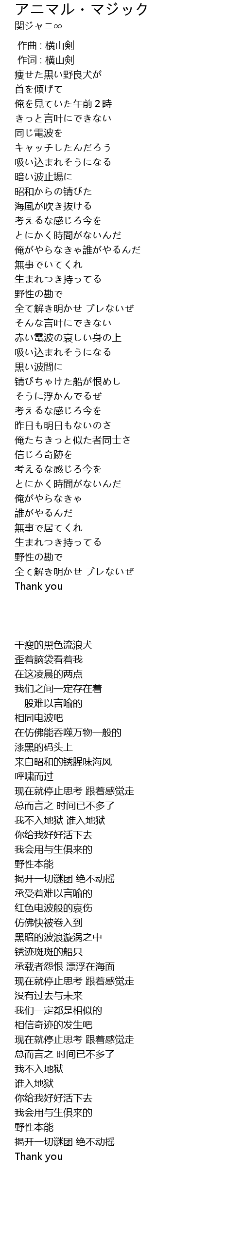 | [00:01.00] | 作词 : 横山剣 |
