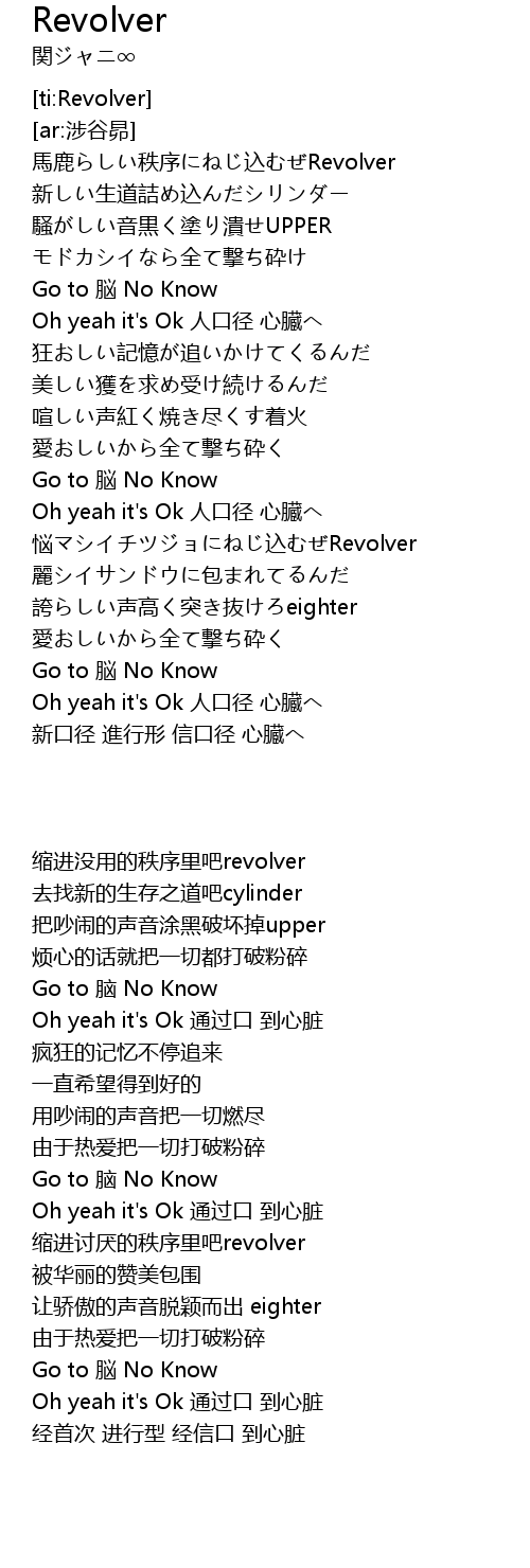 | [00:21.090] | 馬鹿らしい秩序にねじ込むぜRevolver |