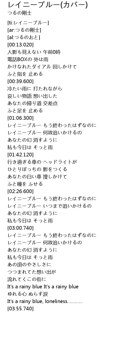 | [01:11.350] | レイニーブルー もう終わったはずなのに |