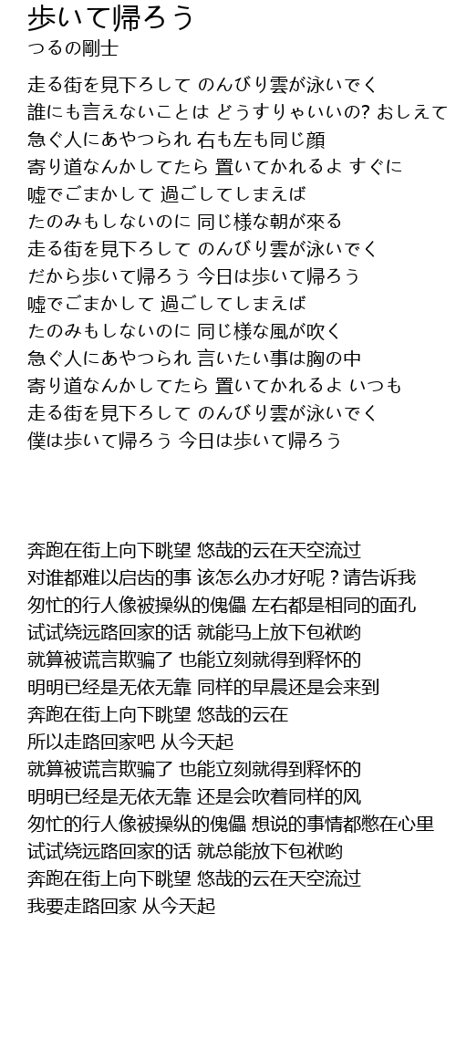 | [01:33.16] | だから歩いて帰ろう 今日は歩いて帰ろう |