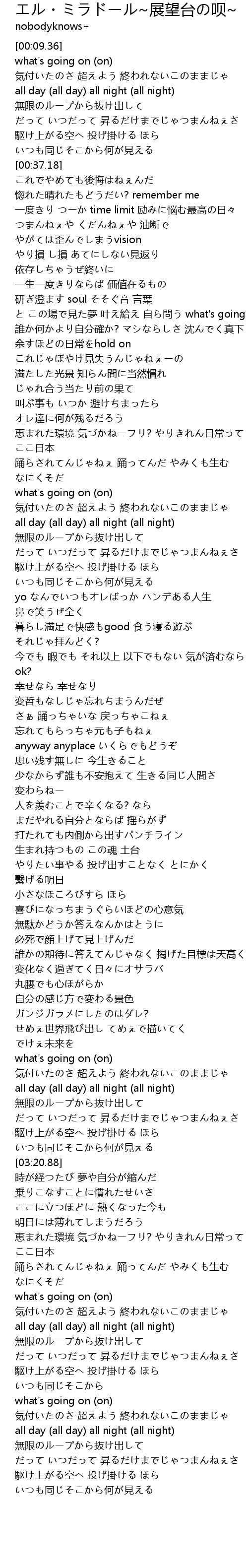 | [01:12.71] | と この場で見た夢 叶え給え 自ら問う what's going on |