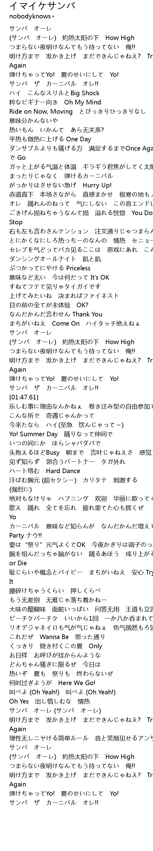 | [01:32.34] | サンバ オーレ (サンバ オーレ) 灼热太阳の下 How High |