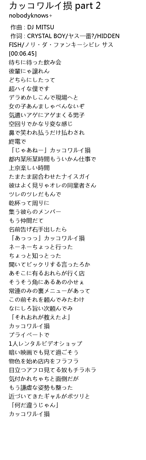 | [00:44.13] | 「あっっっ」カッコワルイ損 |