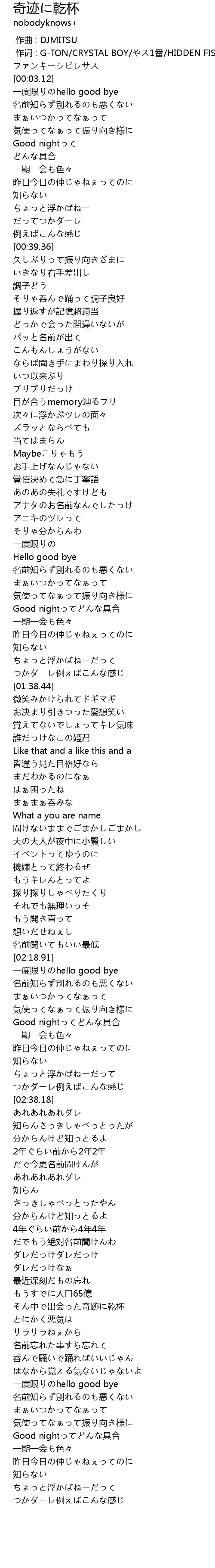 | [02:27.90] | Good nightってどんな具合 |