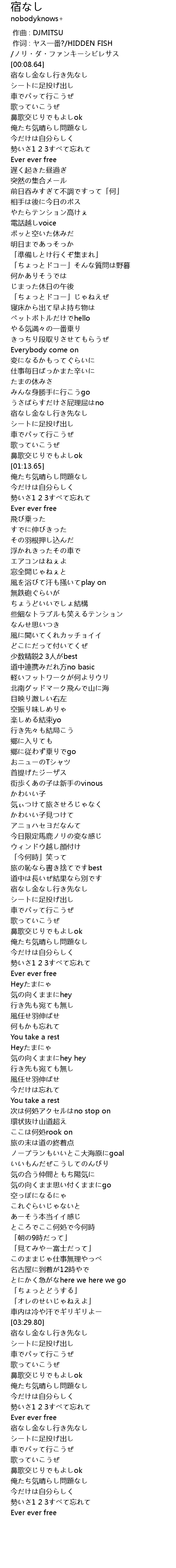 | [00:01.00] | 作词 : ヤス一番?/HIDDEN FISH /ノリ・ダ・ファンキーシビレサス |