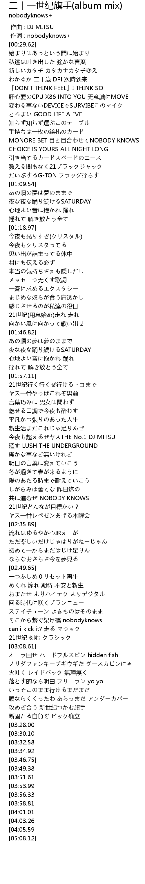 | [02:28.10] | 共に進むぜ NOBODY KNOWS |