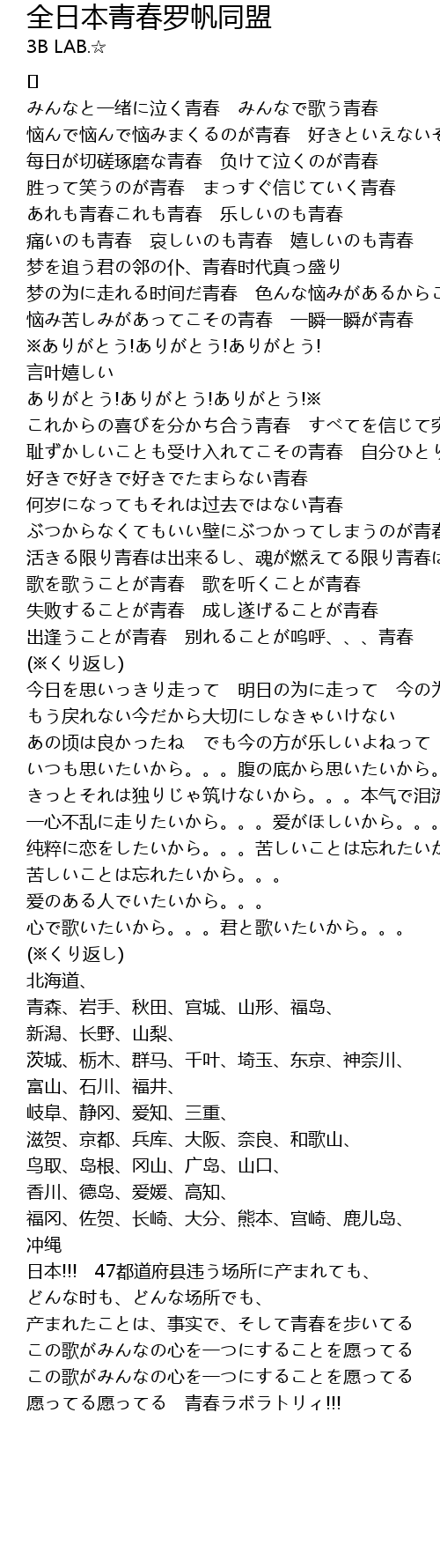| 梦の为に走れる时间だ青春 色んな恼みがあるからこそ青春 | |