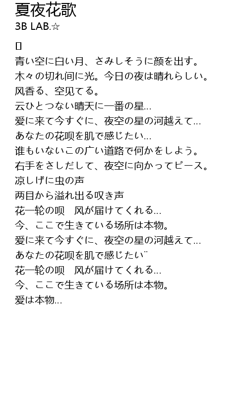 | 爱に来て今すぐに、夜空の星の河越えて… | |