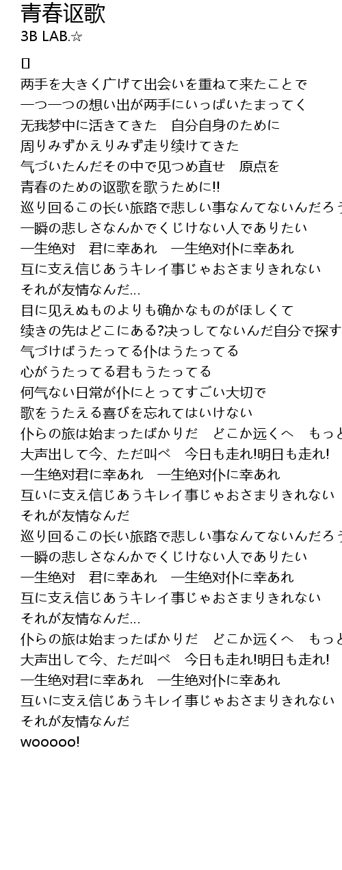 | 大声出して今、ただ叫べ 今日も走れ!明日も走れ! | |