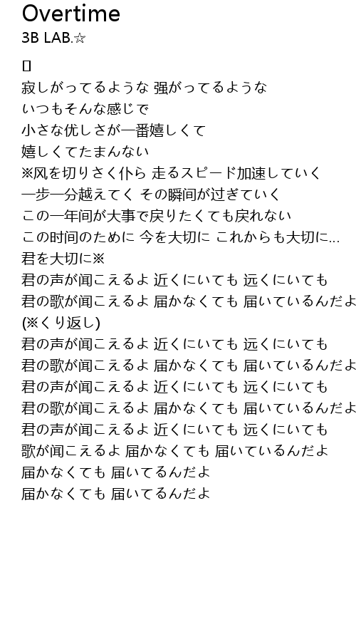 | Song | Overtime |