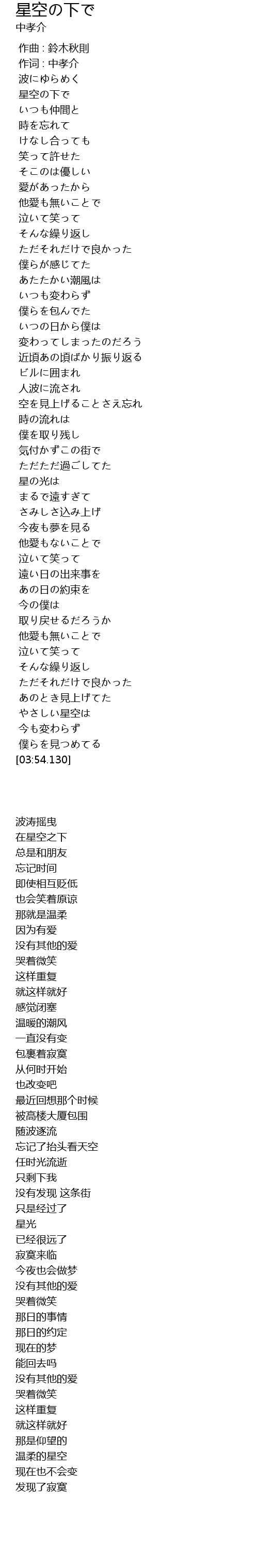 作词 : 中孝介 |