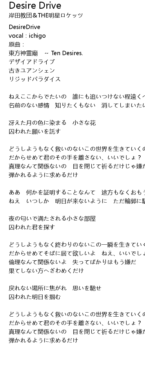 | 真理なんて関係ないの 目を閉じて祈るだけじゃ嫌だ | |