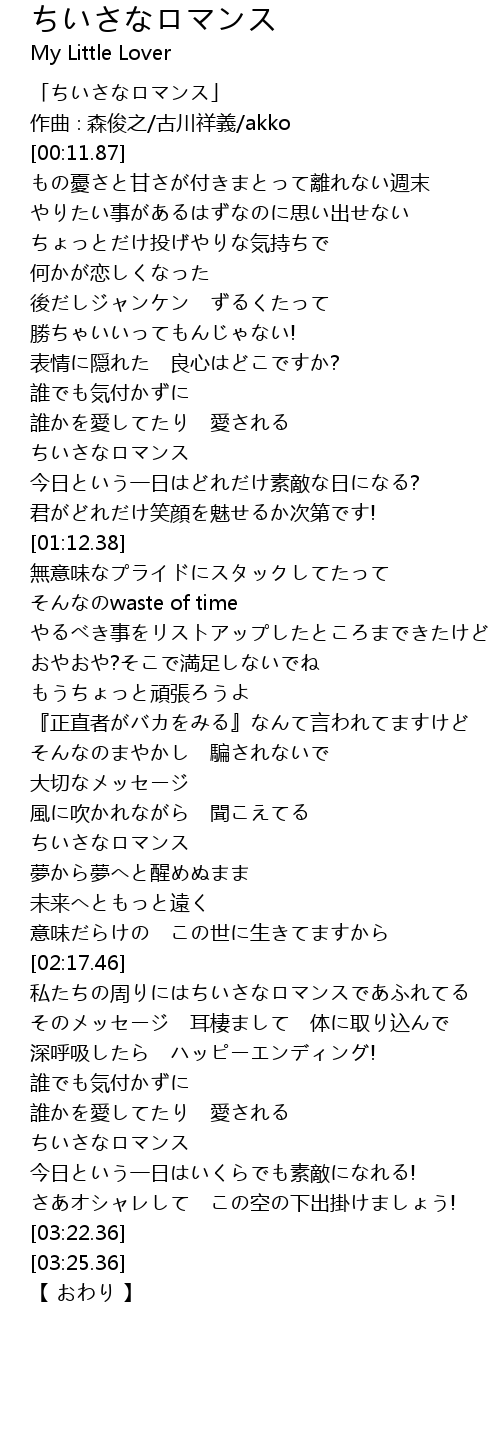| [02:36.49] | 私たちの周りにはちいさなロマンスであふれてる |