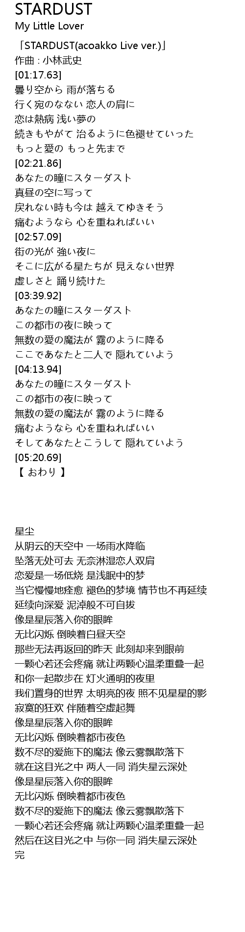 | [00:37.63] | STARDUST acoakko Live ver. |