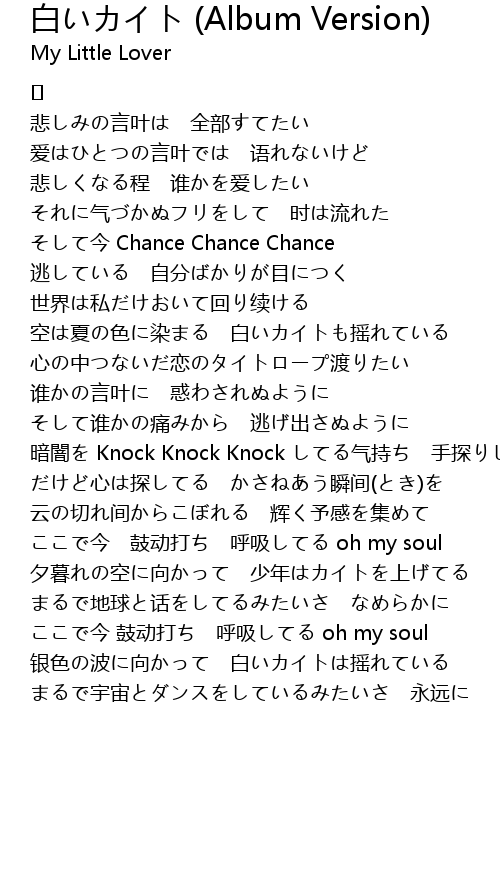 | 暗闇を Knock Knock Knock してる气持ち 手探りしてあせってる | |