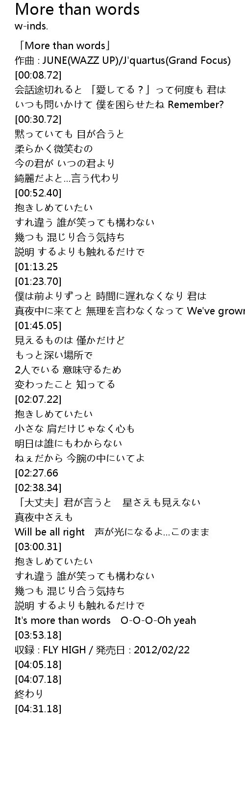 | [01:18.52][01:13.25] | It's more than words O-O-O-Oh yeah |