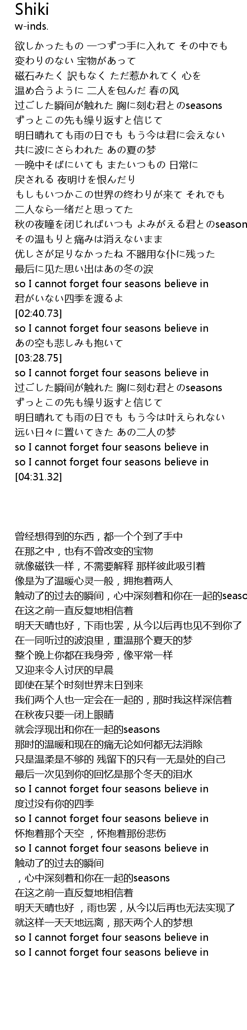 | [04:23.23] | so I cannot forget four seasons believe in |