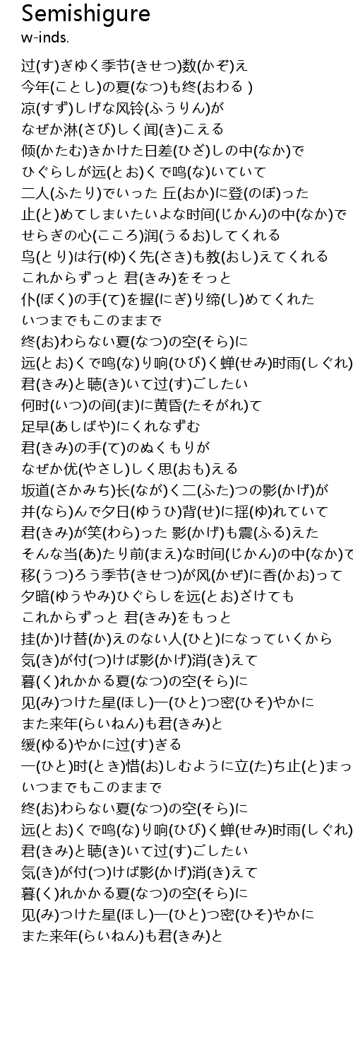 | [03:37.900] | 远(とお)くで鸣(な)り响(ひび)く蝉(せみ)时雨(しぐれ) |