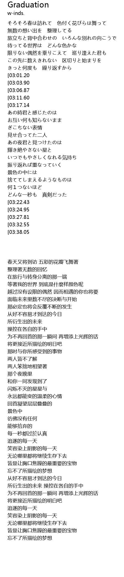 | [01:13.96][03:11.60] | 戻らないその一瞬に 輝きいつも添えたら |