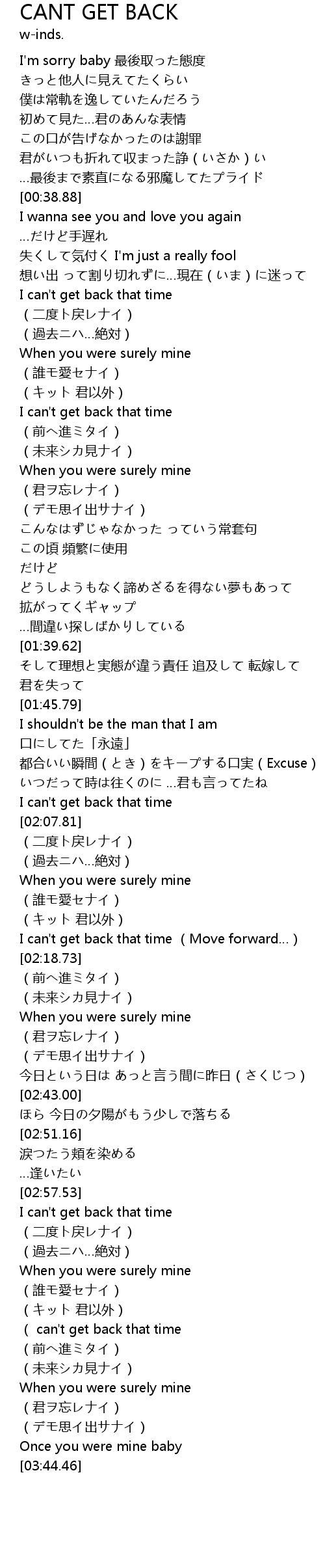 | [00:53.40] | I can' t get back that time |