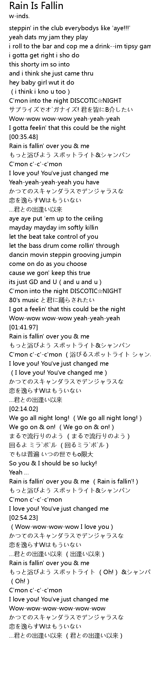 | [02:37.26] | Rain is fallin' over you & me (Rain is fallin'!) |