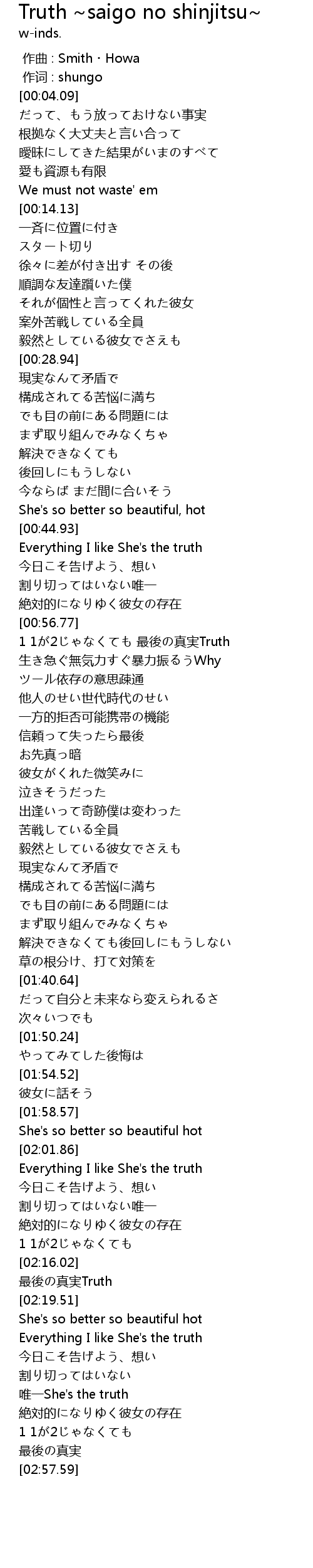 | [02:16.70] | zuì hòu zhēn shí Truth |