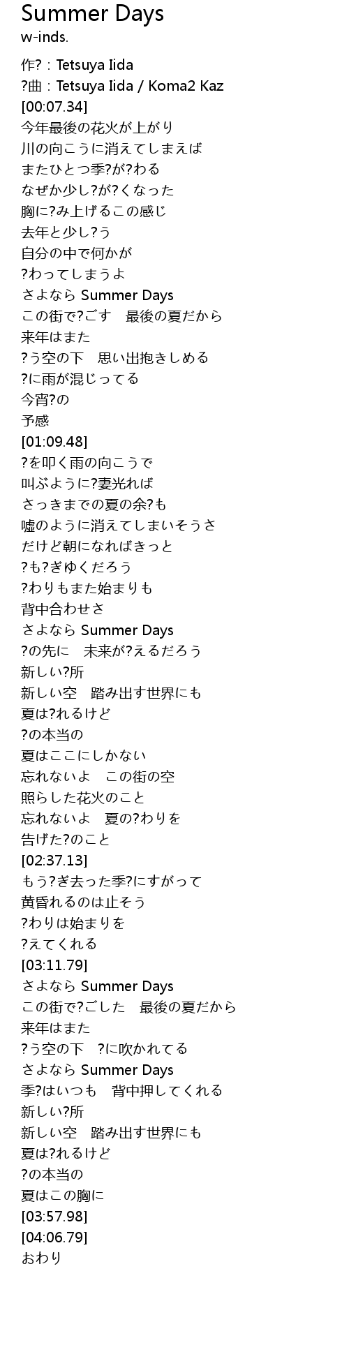 | [00:43.75] | Summer Days |