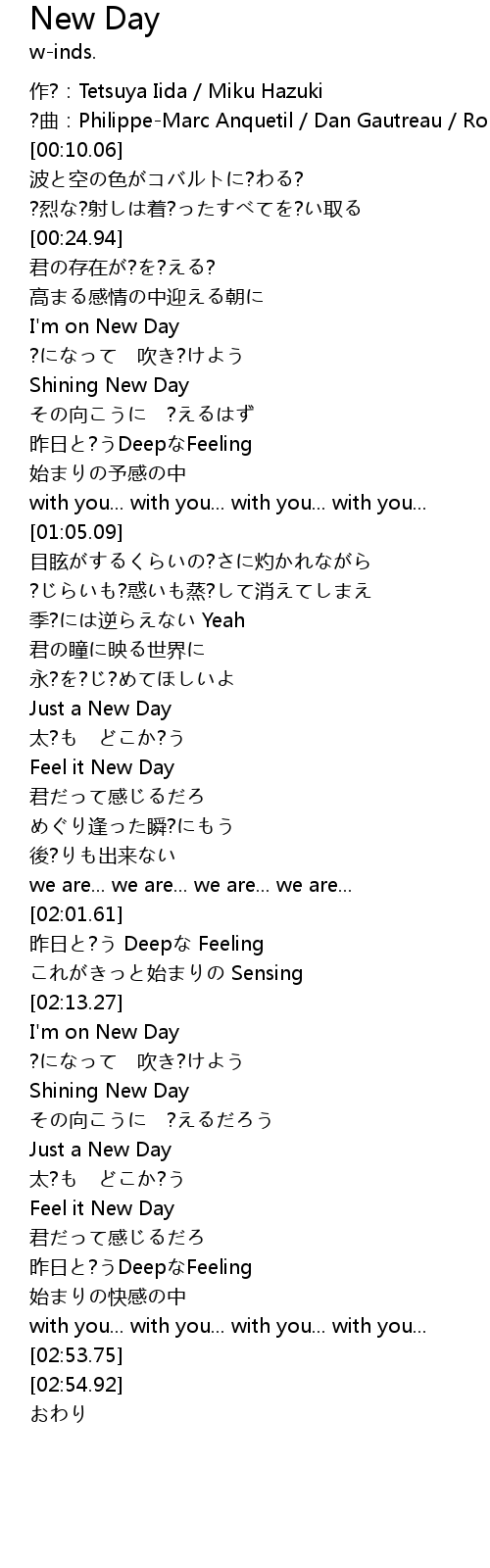 | [02:04.24] | 昨日と?う Deepな Feeling |