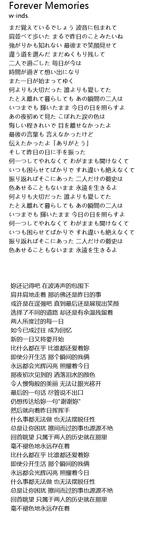 | [01:22.180] | たとえ離れて暮らしても あの瞬間の二人は |
