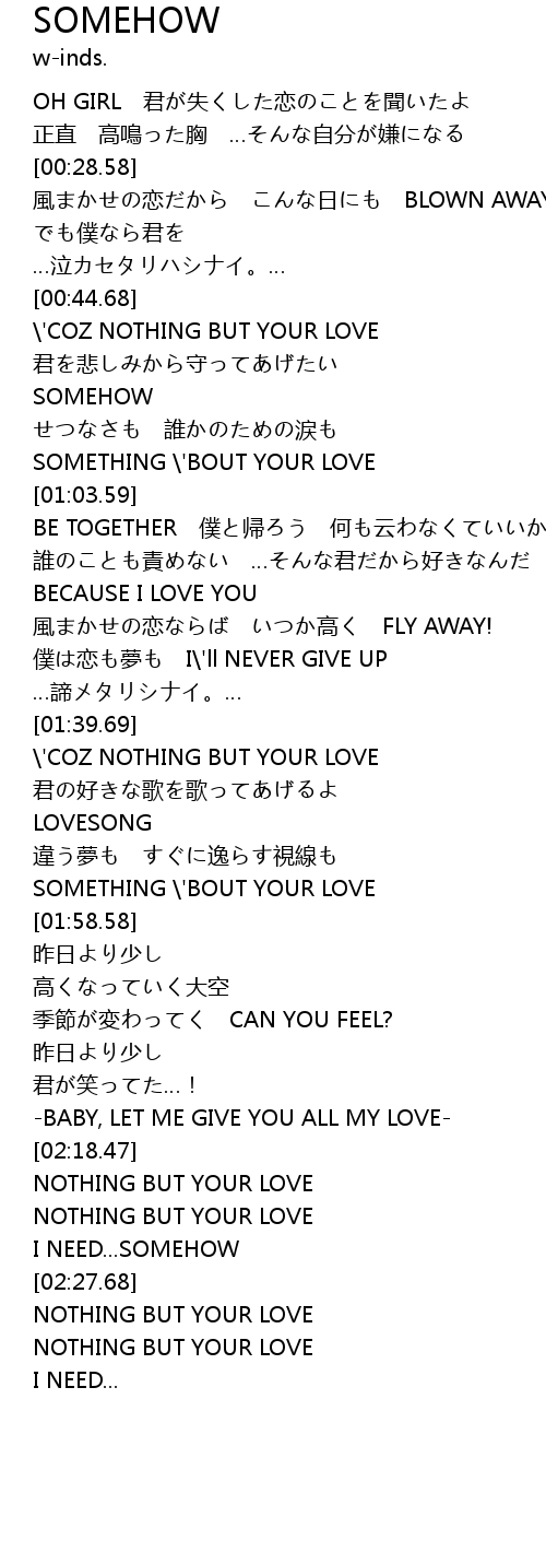 | [01:53.95] | SOMETHING \'BOUT YOUR LOVE |
