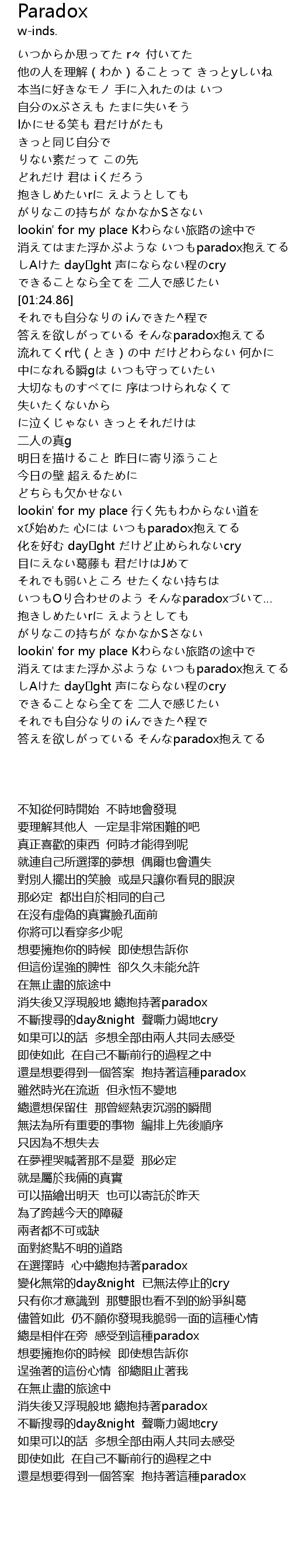 | [02:53.43] | いつもOり合わせのよう そんなparadoxづいて… |