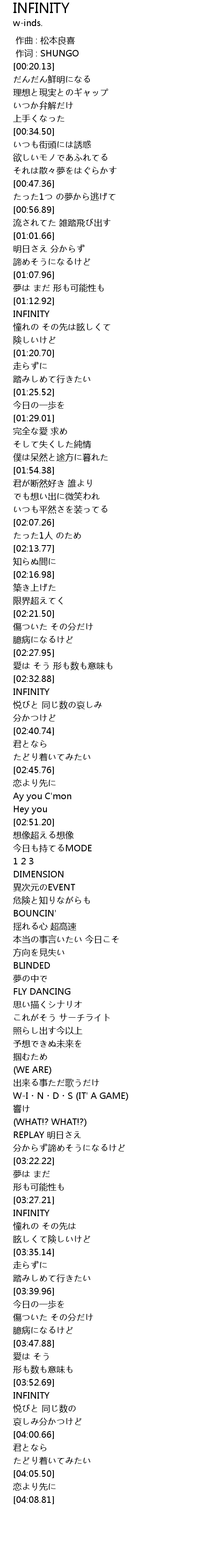 | [03:14.10] | W-I・N・D・S (IT' A GAME) |