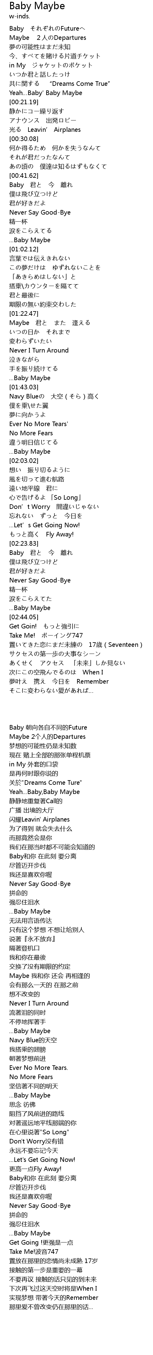 | [00:01.07] | Baby それぞれのFutureへ |