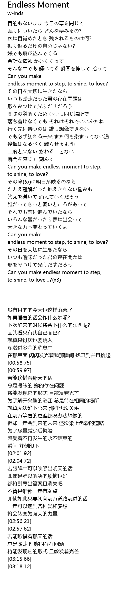 | [02:57.62] | endless moment to step, to shine, to love? |