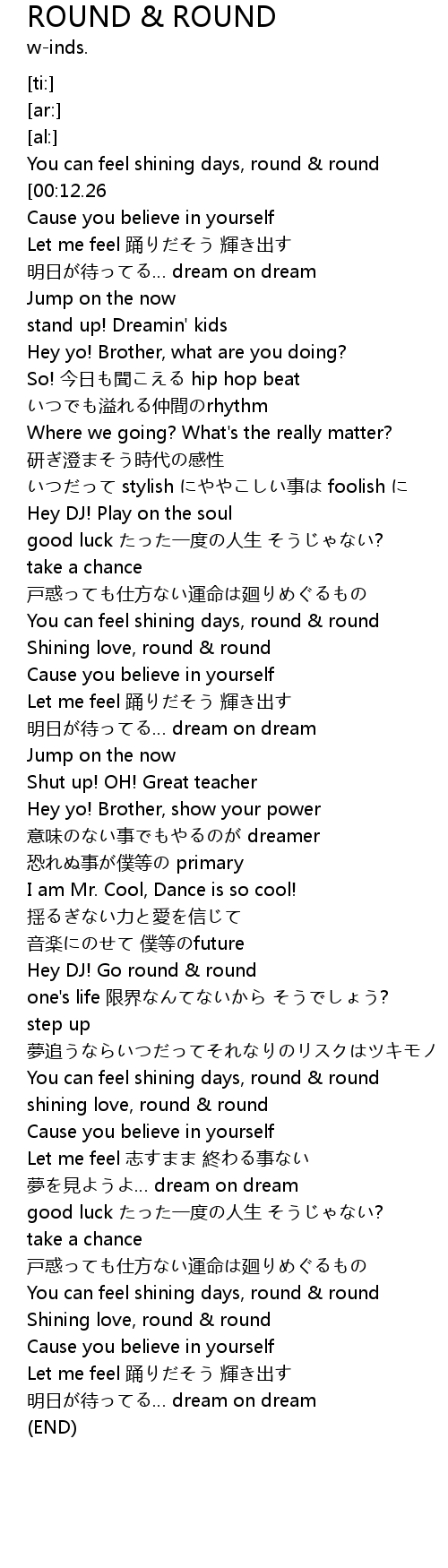 | [03:09.62] | You can feel shining days, round & round |