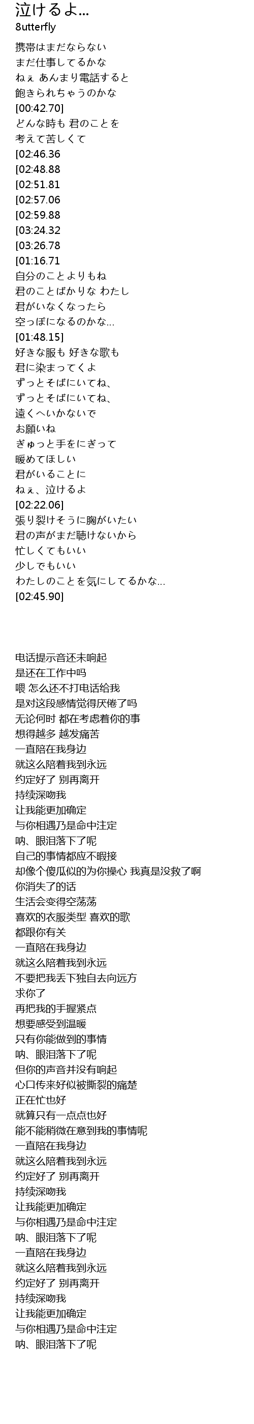 | [03:13.55][02:51.81][00:59.93] | もう離さないで 約束ね |