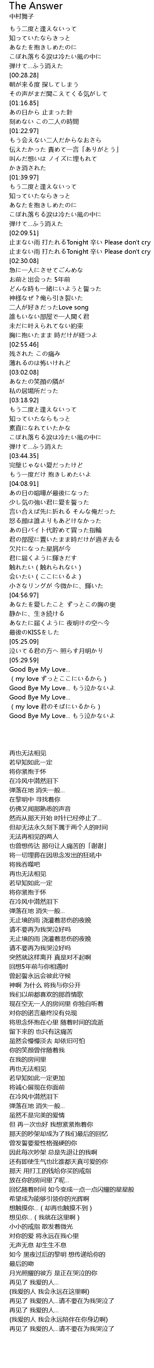 | [01:26.79] | 伝えたかった 責めて一言「ありがとう」 |